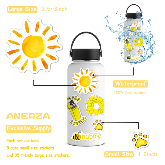ANERZA 40 Pcs Yellow VSCO Stickers for Laptop, Water bottle