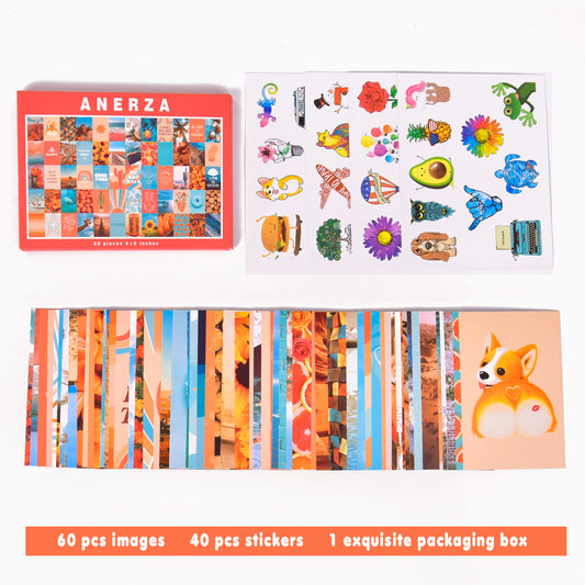 ANERZA 60 PCS Wall Collage Kit Aesthetic Pictures, Aesthetic Room Decor for Teen Girls, Photo Wall Decor, Vsco Trendy Bedroom Posters, Peach Teal Boho Wall Art, 4x6 inch