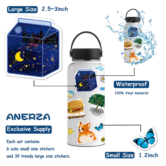 ANERZA 45 Pcs VSCO Stickers for Laptop, Water bottle A